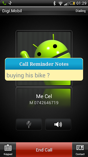 • Assign an "Always ON" Reminder, to a Contact. Reminder Note will be shown on the screen each time you call that Contact