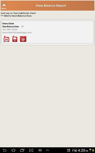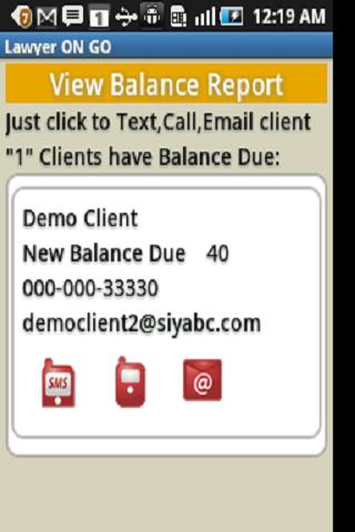 - Bills/Collection and Balance Due Report - Allows you in just ONE tap to text, call or email your clients who have balance due.