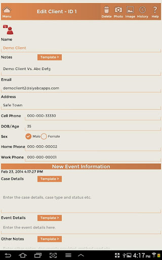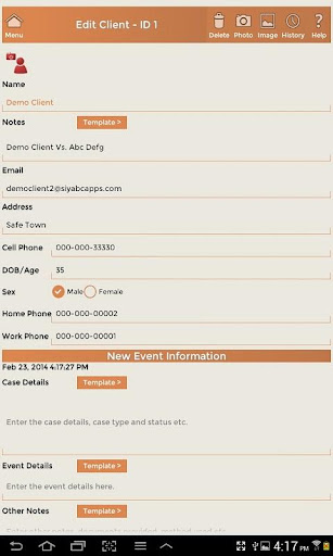 - Support for photo, audio, video, file or document attachments for client and event records.