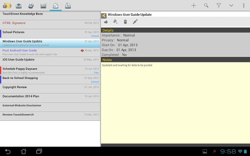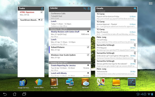 TouchDown HD gets your Email, Contacts, Calendar and Tasks from your corporate Exchange server, and gives you a single tabbed view.