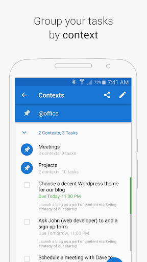 Organize tasks from different projects using flexible context lists. If you are familiar with GTD you would just love this feature