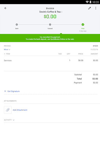 Get paid faster by credit card or bank transfer (requires activating QuickBooks Payments).